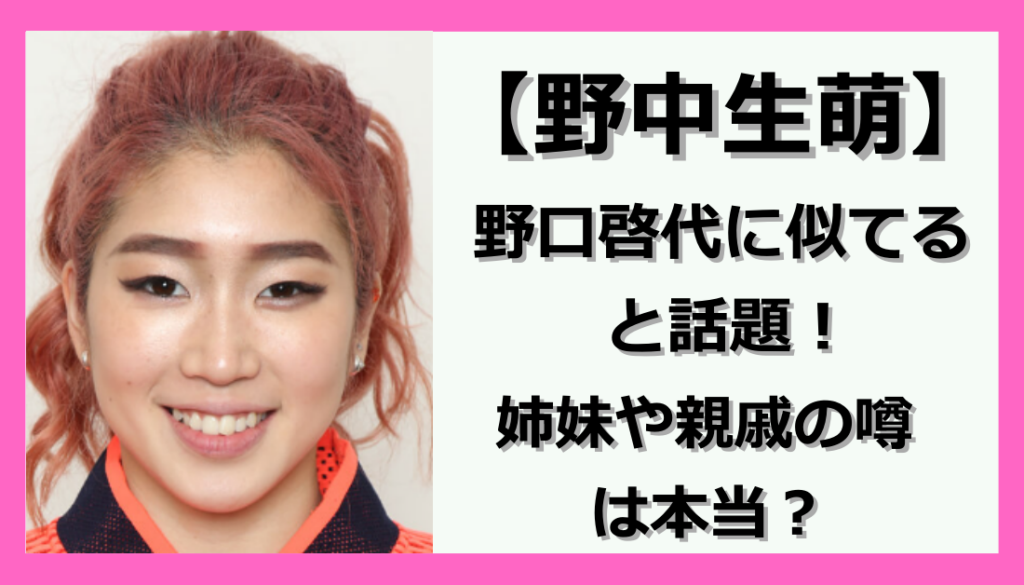 オリンピックで注目の競技と言えば,[スポーツクライミング]ですよね。 その日本代表である野中生萌選手は、同じスポーツクライミングの元選手である野口啓代さんと似てる話題になっています。 この2人は姉妹や親戚だとも言われていますが,噂は本当なのでし... -