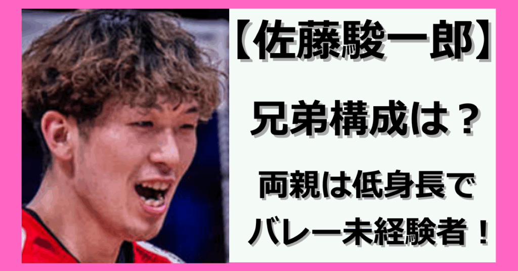 佐藤駿一郎さんといえば、男子バレーボール日本代表として活躍していますよね。 204cmという圧倒的な身長を活かしたプレーで、今後の活躍も期待されています。 そこで今回の記事は、 佐藤駿一郎は5人家族!佐藤駿一郎の兄弟構成は?佐藤駿一郎の両親は低身...