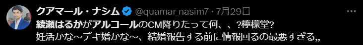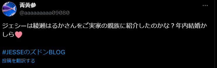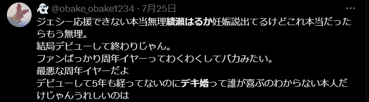 このように、綾瀬はるかさんとジェシーさんの「デキ婚」を心配する熱烈なファンの声もあります。
