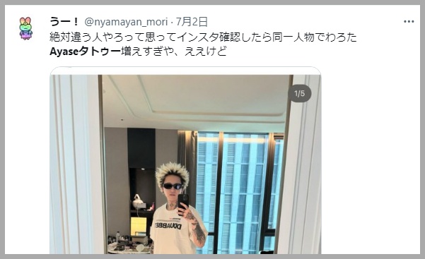 Ayaseさんの首のタトゥーは2023年6月の韓国旅行から8月5日のアメリカのフェスまでの間に入れた