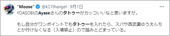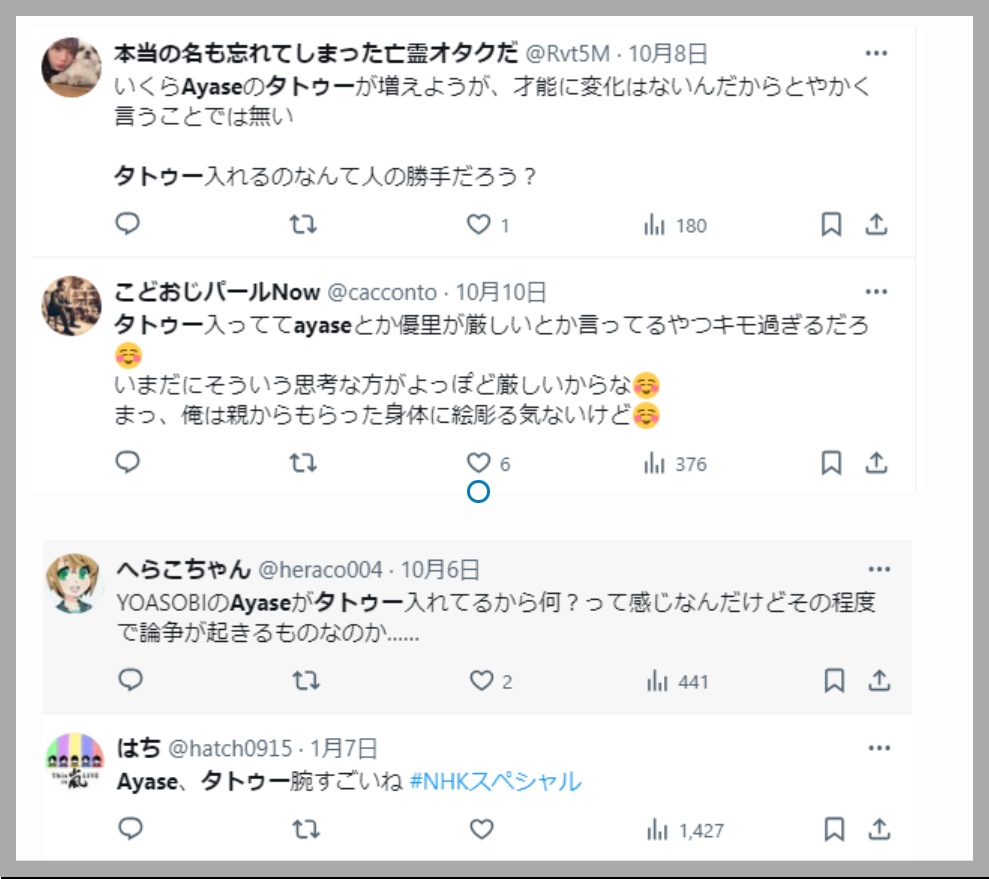 Ayaseさんのタトゥーに対してのXのポストのほとんどは好意的でした。