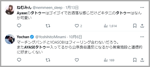 ・YOASOBIAyaseのタトゥーに対する世間の反応