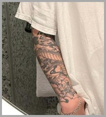 デビューの翌年、2020年6月27日のインスタグラムで左腕の蛇のタトゥーが確認されています。