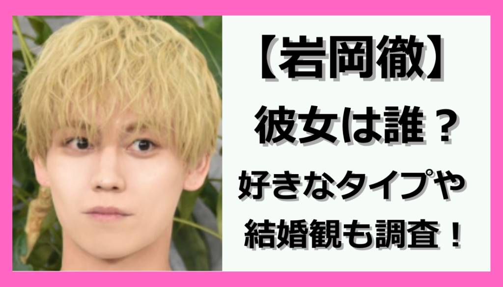 【顔画像】岩岡徹の彼女は誰?好きな女性のタイプや結婚観を調査!