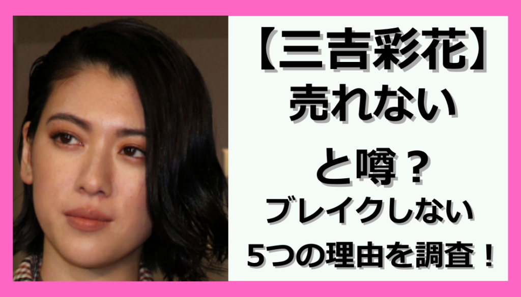 モデル、女優として活躍している、三吉彩花(みよし あやか)さん。 日本人離れした抜群のスタイルと演技力を武器に、多くの作品に出演していますね。 そんな三吉彩花さんですが、「売れない」「ブレイクしない」と言われているようなんです。 一体なぜ、...