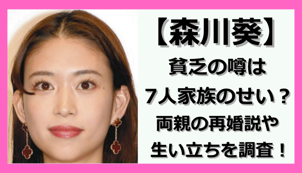 モデルや女優、バラエティ番組でも活躍している、森川葵さん。 なんでも器用にこなす多彩っぷりから、「カメレオン女優」と称されることも多いですね。 そんな森川葵さんですが、「実家が貧乏」「7人の大家族」という噂があるようです。 そこで今回の記事... -