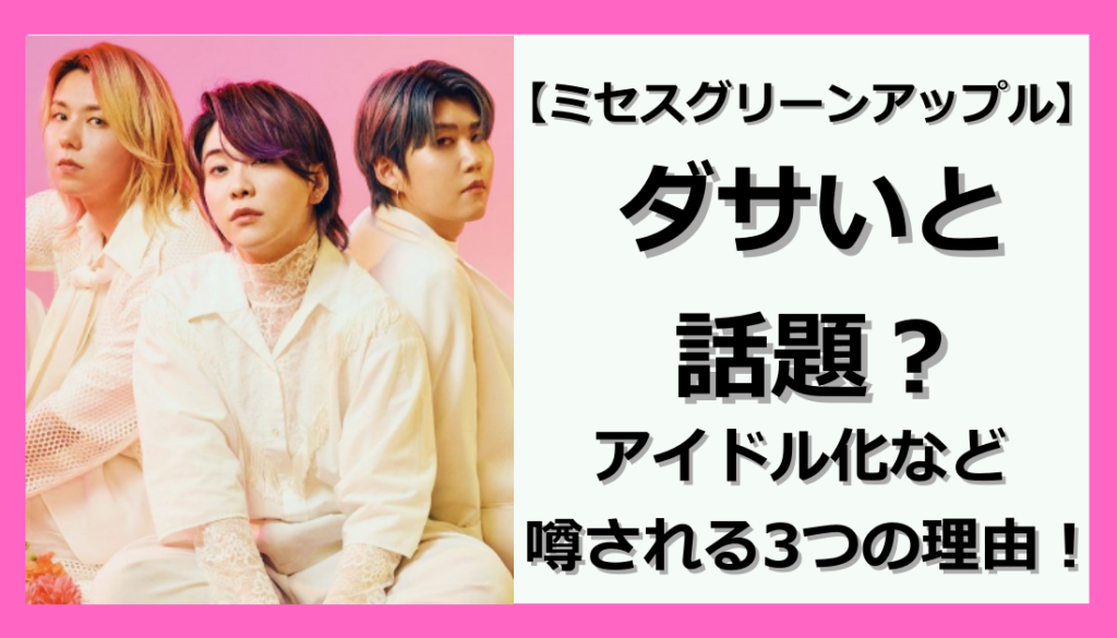 音楽バンドの「ミセスグリーンアップル」。 「ミセスグリーンアップル」は、若者を中心に圧倒的な人気を誇り、多くのヒット曲を生み出しています。 そんなミセスはビジュアルに注目が集まる一方で、「ダサい」とも言われているようです。 一体なぜ、そのよ... -