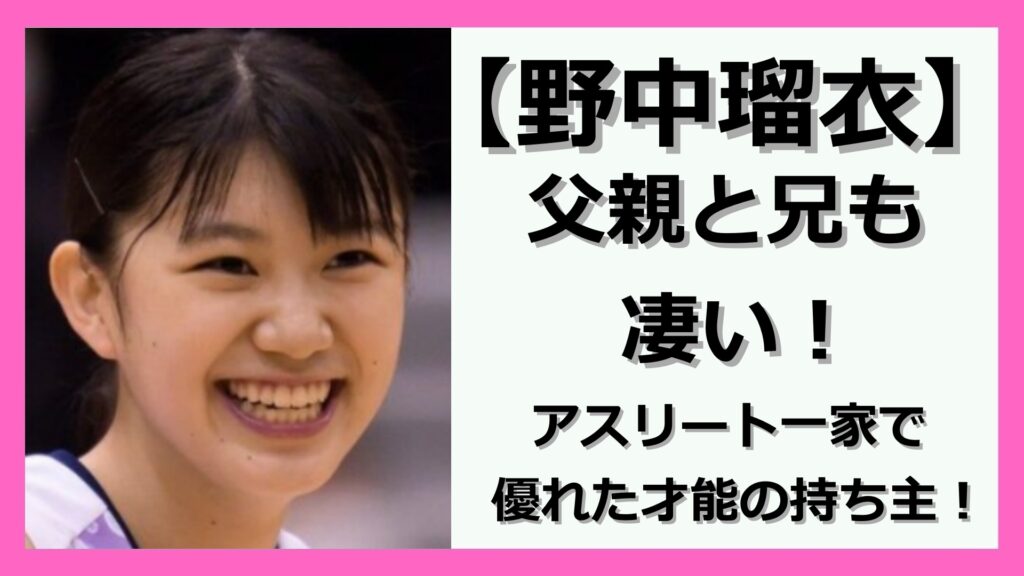 女子バレーボール選手で「日立Astemoリヴァーレ」に所属している、野中瑠衣さん。 美女アスリートとして話題になっており、バラエティ番組でも見かけるようになりましたね。 そんな野中瑠衣さんですが、「父や兄もアスリート」と、話題を集めています。 そ... -