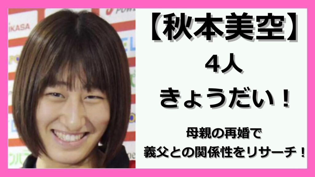 バレーボール界で将来を嘱望されている若き才能、秋本美空さん。 母親はあの元バレーボール日本代表、大友愛さんだということは、ご存知の方も多いのではないでしょうか。 実は秋本美空さんには、お母様の再婚によってできた異母兄弟がいるんです。 そこで... -