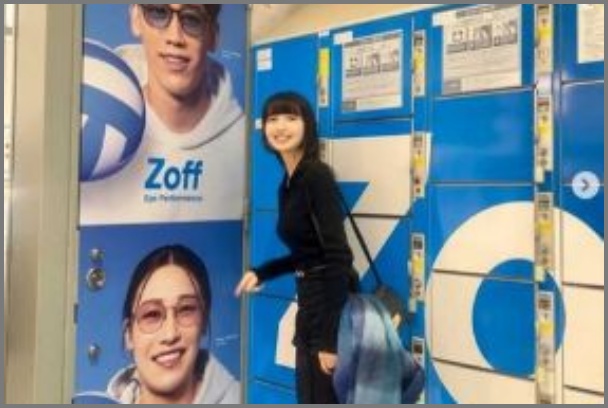 cocomiさんは、石川祐希さん、石川真佑さんをモデルに起用した、『Zoff(ゾフ)』の巨大ポスター前で撮った写真をアップ。
