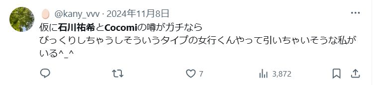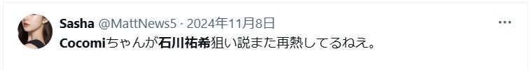 なぜcocomiさんが、「石川祐希さんを狙っている」と言われたのでしょうか。