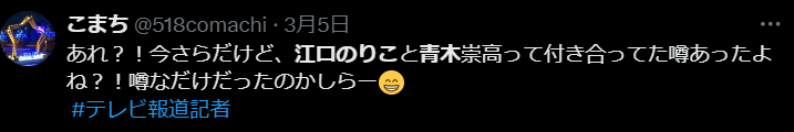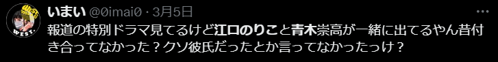 確かに、ネット上ではこのように「江口のりこさんが過去に青木崇高さんと付き合っていた」と言われています。