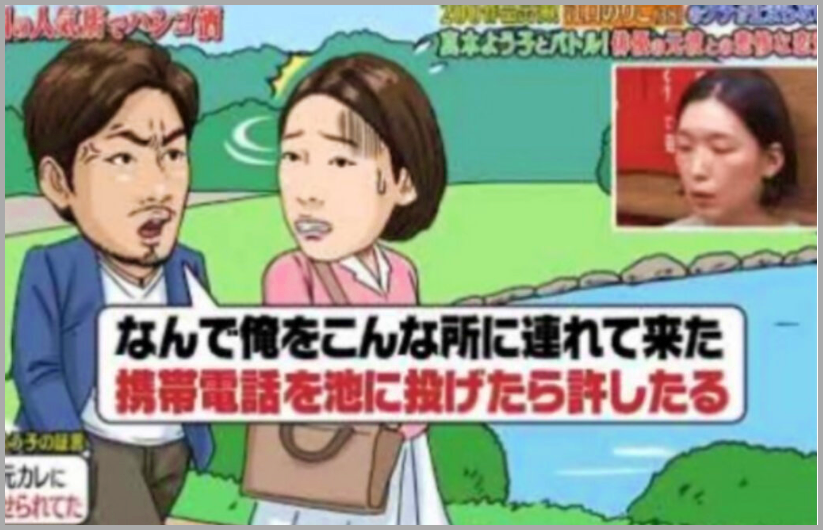 - しかし、リス園デートが気に入らなかった元カレ俳優Aさんは、「なんで俺をこんなところに連れてきたんや!」と罵声。「携帯電話を池に投げろ!そうしたら許したる」と命令してきた。