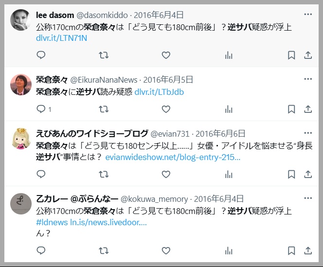 この一件があって、「榮倉奈々さんは身長をサバ読みしており、本当はもっと背が高いのでは?」とささやかれるようになってしまいました。