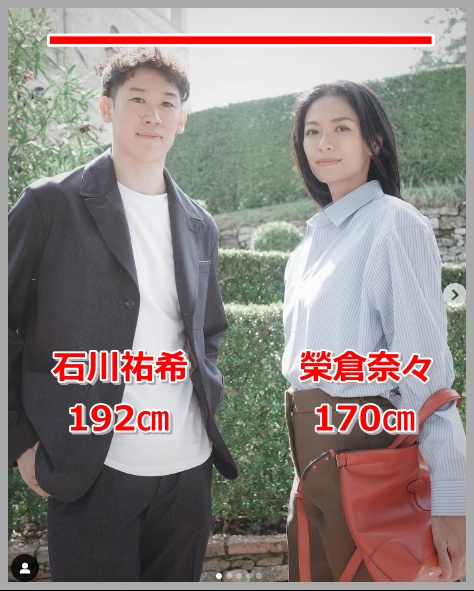 身長192cmの石川祐希選手と170cmの榮倉さんが並んだ姿は、まさにモデルそのもの!
