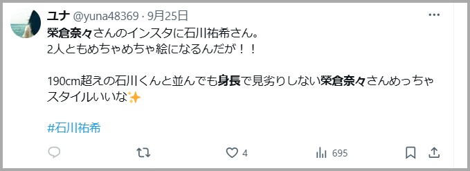 2024年9月バレーボール男子イタリア1部ペルージャの石川祐希さんとの2ショットを公開し、反響を呼んでいます。