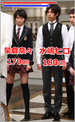 しかし、実際の画像では、榮倉奈々さんの頭頂部が石川祐希の頬辺りですね。