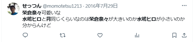 榮倉奈々さんと水島ヒロさんの身長差についての声が寄せられていました。