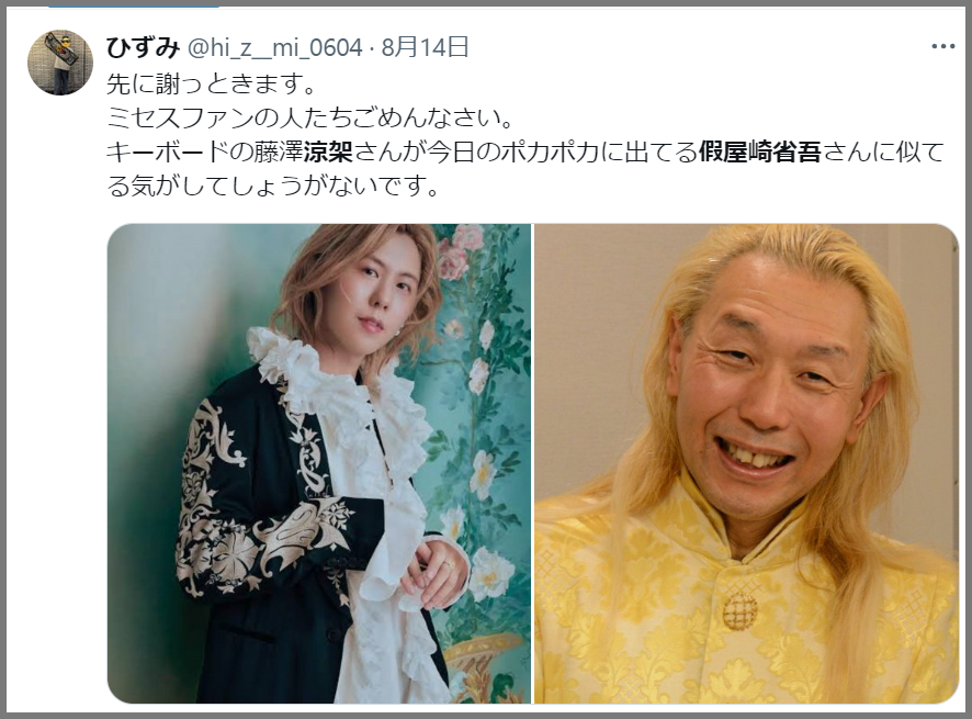 藤澤涼架さんと假屋崎省吾さんが似ているという声は確かにあります。