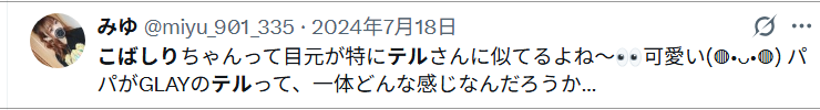 しかし、否定はしていないことや、現在もTERUさんは、明里さんのSNSをフォローしていることから親子関係であることは、間違いないと思われます。