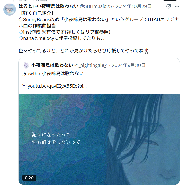 定期的に新曲をリリースおり、ユニットや自身のSNSにアップされています。