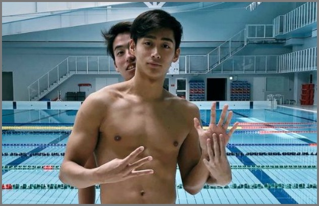 この画像は、そのとき出場した水泳大会での一コマだったようですね。
