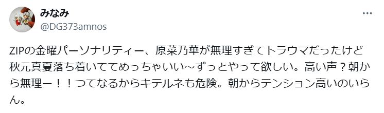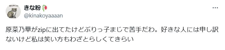 原菜乃華さんは明るくテンションが高いイメージですが、それ自体が『苦手』という人もいるようです。