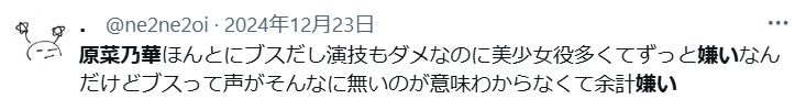 もちろん一部ではありますが、視聴者から原菜乃華さんのリアクションや表情が、「苦手」「嫌い」と言われています。