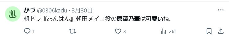 原菜乃華さんは、2025年スタートのNHK朝の連続テレビ小説「あんぱん」にも出演しています。