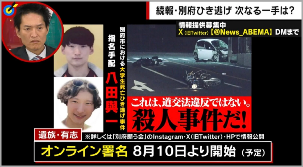 遺族はこの事件を「殺人」として捉え、八田容疑者の捜査を「ひき逃げ」から「殺人罪」に切り替えるよう求めています。