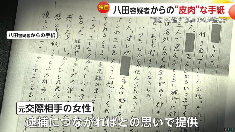 また、八田與一容疑者は事件前、元交際相手に手紙を送っていたそうです。