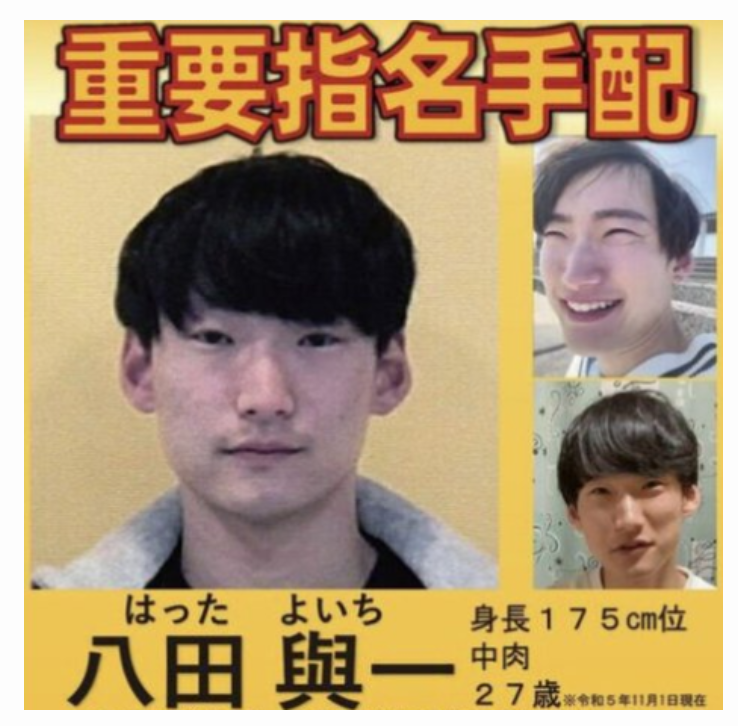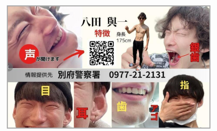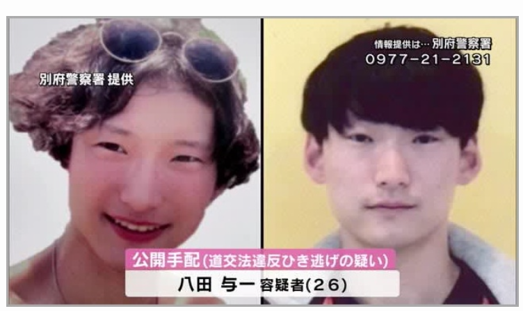 『別府ひき逃げ事件』を起こし、重要指名手配中の八田與一容疑者。