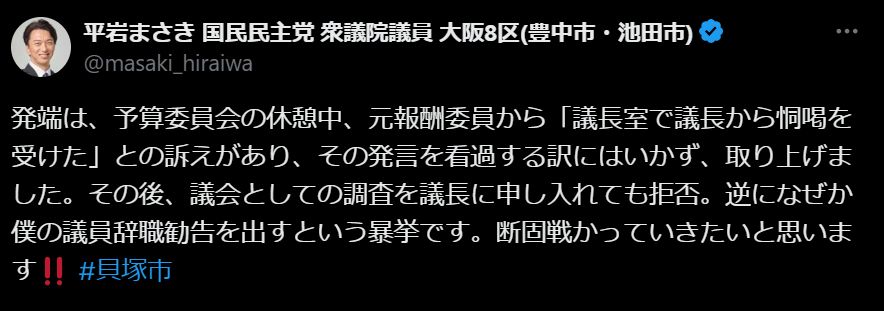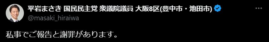 不倫が報じられた国民民主党の衆議院議員・平岩征樹さんが、謝罪しましたね。