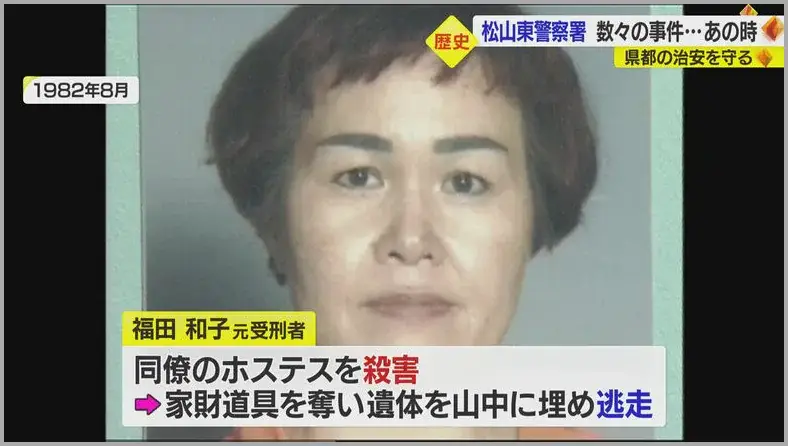 、福田和子は、1982年8月に松山市で同僚のホステスを殺害した後、約15年間にわたって逃亡生活を送りました。