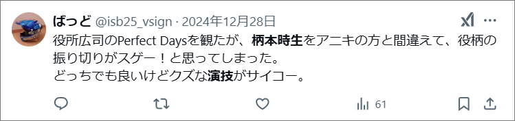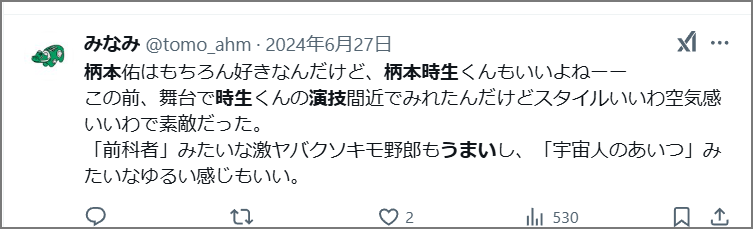 SNSでは柄本時生さんについて以下のような声がありました↓