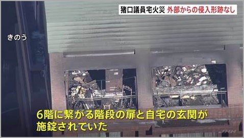 ②出火元が猪口邦子議員宅で他の部屋は燃えなかった