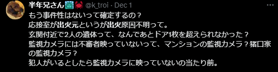 このことから、単なる火事ではないと思っている方が多いということかもしれません。