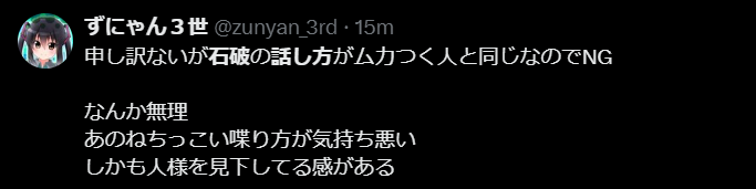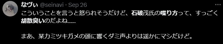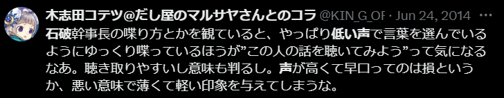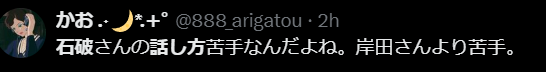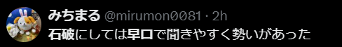 実際に、ネット上では石破茂氏の話し方について、好感を持っている意見も見受けられます↓