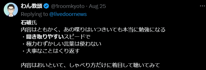 石破茂氏の喋り方には、賛否両論があることがわかりました。