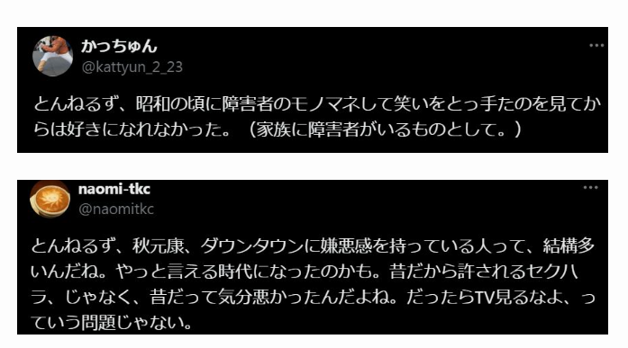 その時代にそぐわない「芸風」が、「苦手」「嫌い」という声につながったようですね。
