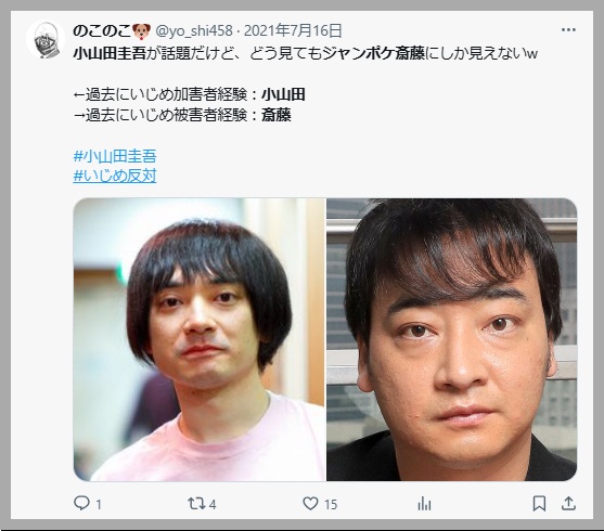 Xでは「ジャンポケ斎藤と小山田 圭吾さんが似てる」と話題になっていましたのでご覧ください。
