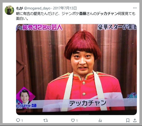 Xでは「ジャンポケ斎藤とデッカチャンが似てる」と話題になっていました。