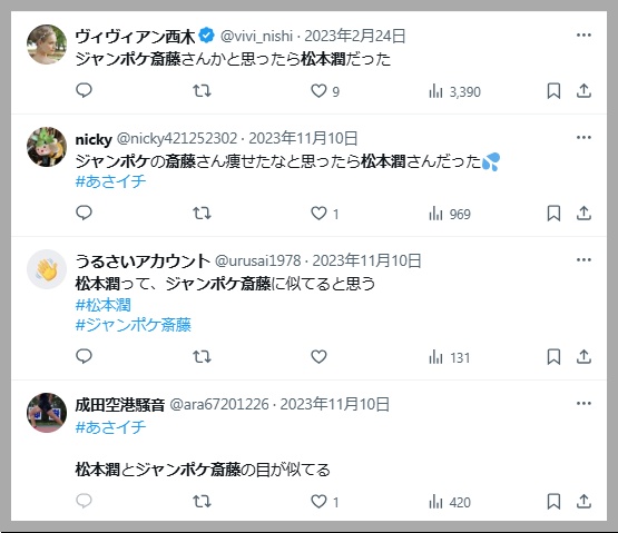 Xでは「ジャンポケ斎藤と松本潤さんが似てる」と話題になっていました。
