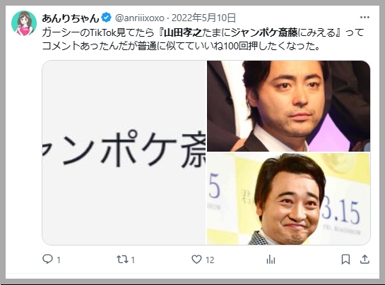 Xでは「ジャンポケ斎藤と優里さんが似てる」と話題になっていました。