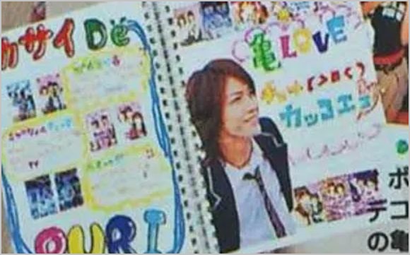 プリクラ帳に「亀LOVE」と書かれた写真を貼り、雑誌に掲載していました。