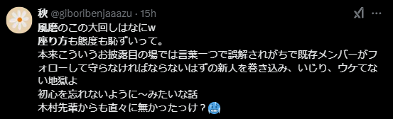 また、Mステでの収録中の態度や、ファンミーティングでの発言なども批判の対象となっています。
