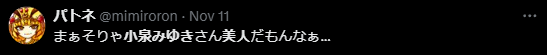 SNS上では、小泉みゆきさんの容姿について、このように絶賛されています↓