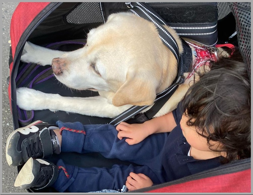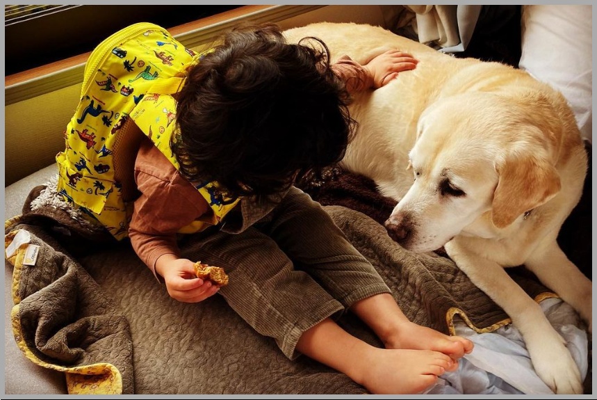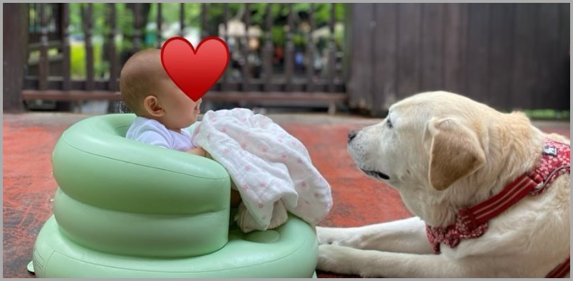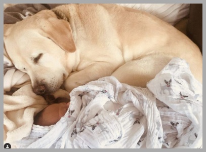 こちらは愛犬のアリスと一緒の、生後間もないご長男ですが、癒やされるお写真ですよね~
