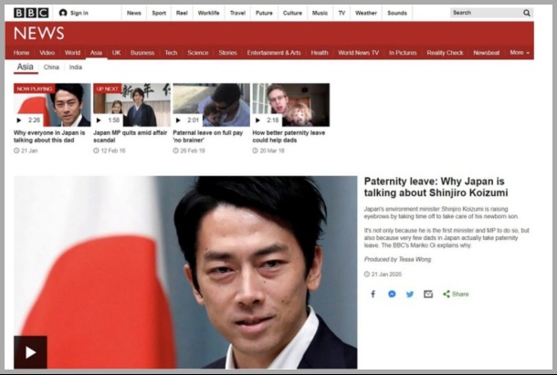 小泉進次郎さんの育休取得は、海外メディアでも注目を浴びイギリスのテレビ局BBCでは、