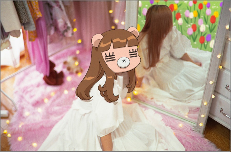 メディアでは一切顔出しせず、クマの「れ子ちゃん」というキャラクターの被り物をしています。